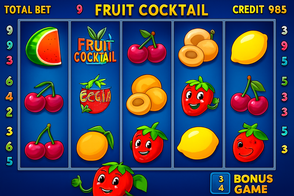 Vamos a platicar de cómo jala el juego Fruit Cocktail, esta tragamonedas divertida de Igrosoft. Tiene un diseño clásico con 5 carretes, 3 filas y hasta 9 líneas de pago que tú eliges. Solo decides cuántas líneas vas a usar, pones tu apuesta y le das a “Girar” para que los carretes se muevan. Tu meta es alinear frutas como limones, manzanas, peras o fresas en las líneas activas para sacar unas ganancias. Es tan sencillo que cualquiera puede entrarle y pasarla bien.